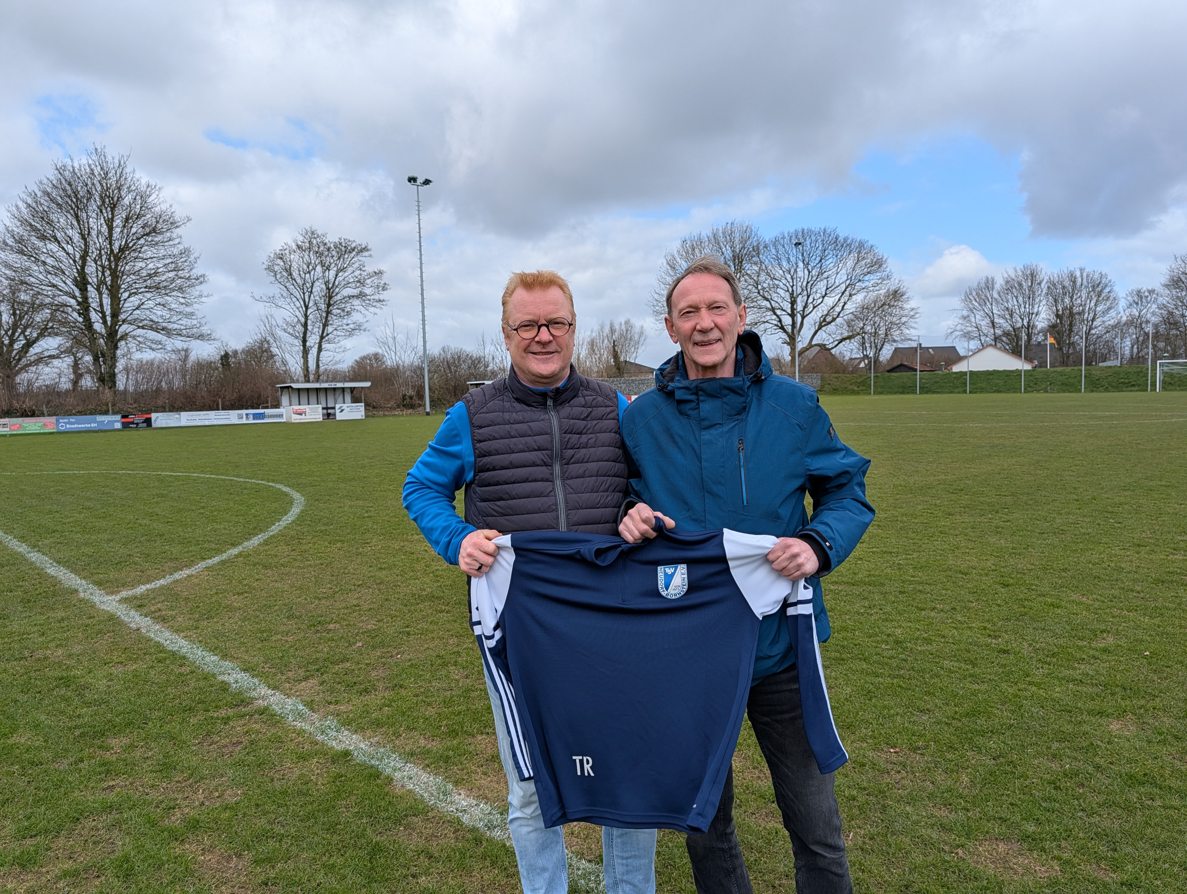 Fußballobmann Christian Lundius (rechts) präsentiert kurz vor Saisonstart ein neues Trainer- und Betreuungsteam.